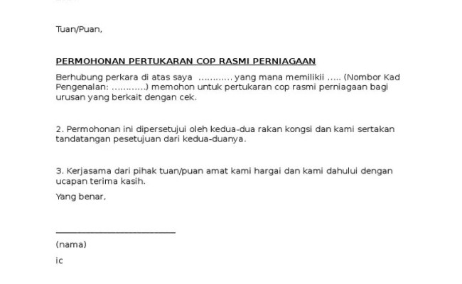 Contoh Surat Rasmi Permohonan Pertukaran Nama Syarikat Otosection